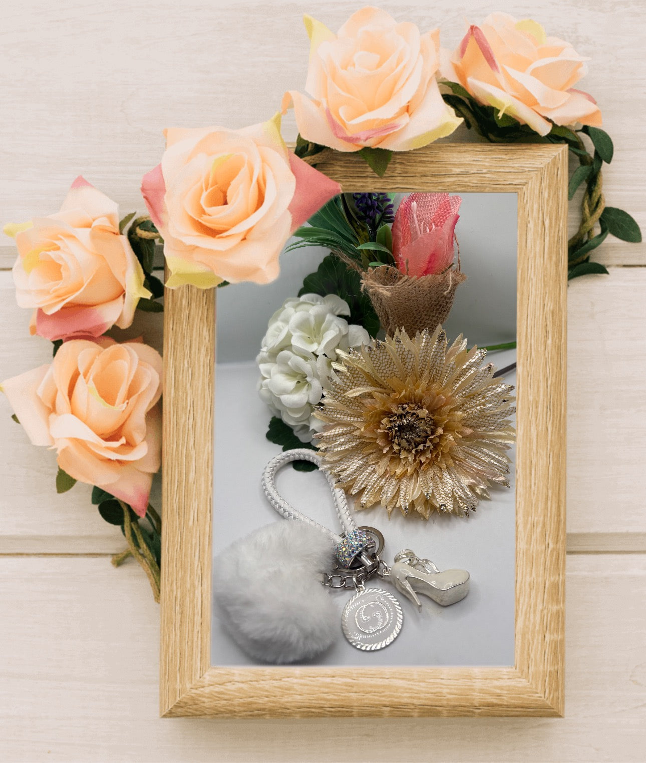 Keychain with White Plush Heart and Designer Inspired Charm #81